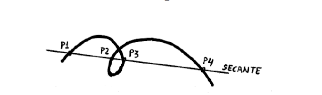 Se van a definir las principales características de las curvas planas. La recta secante de una curva es la que une dos puntos de la curva separados una distancia finita. El orden de una curva es el número máximo de puntos de corte con una secante. En la figura se muestra una curva de 4° orden.